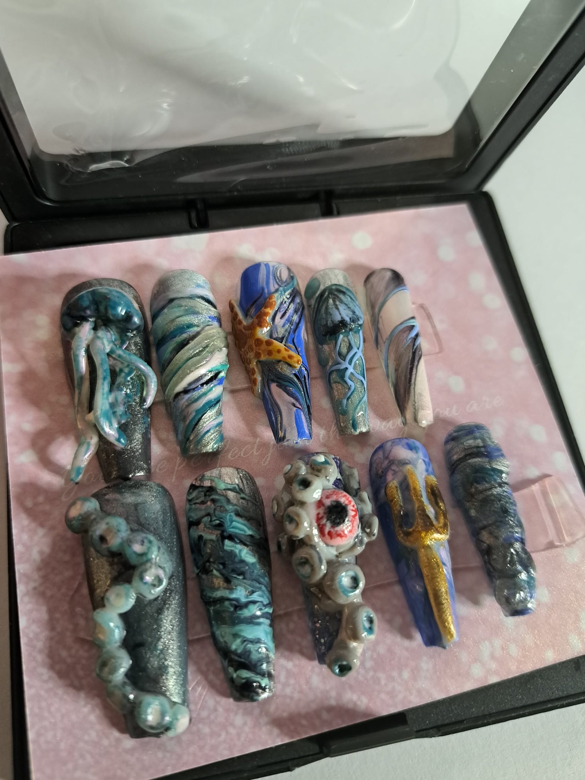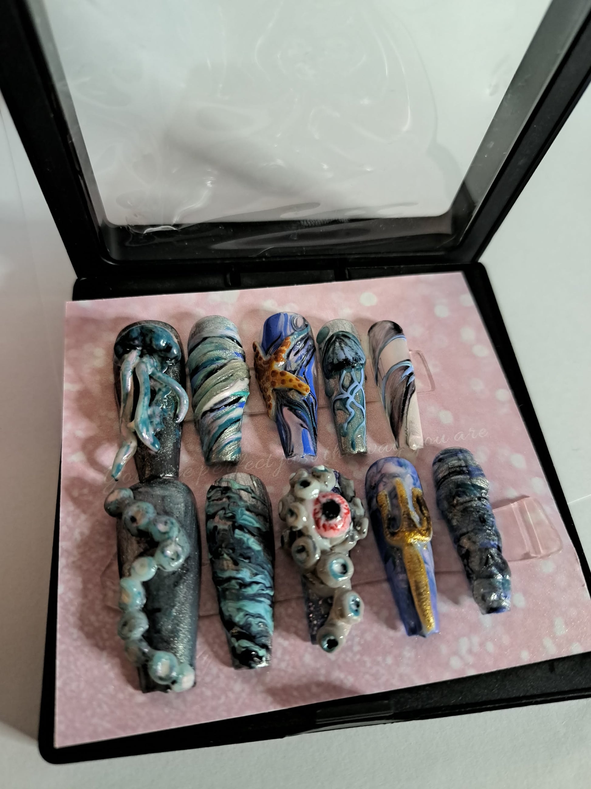 Les press on nails sont des ongles artificiels prêts à poser qui se collent directement sur tes ongles naturels à l’aide d’une colle ou d’autocollants adhésifs.